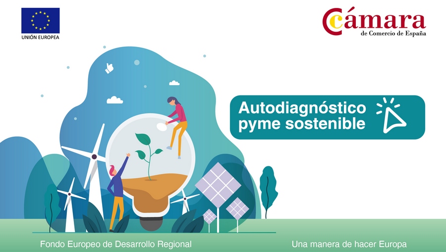 - Esta herramienta, impulsada por la Comisión de Comunicación y Sostenibilidad de la Cámara de España, se enmarca en el Programa de Sostenibilidad para Pymes cofinanciado por el Fondo Europeo de Desarrollo Regional