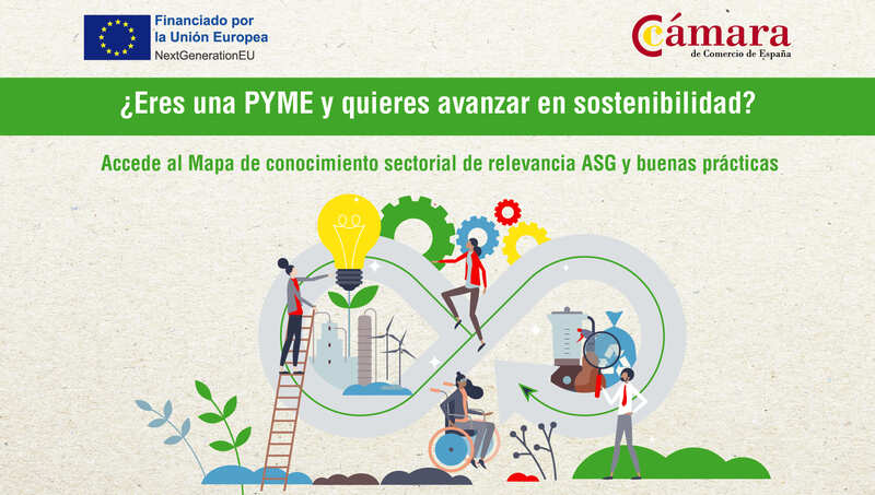 Madrid, 14/06/2022. La Cámara de Comercio de España, a través de la red de Cámaras de Comercio Territoriales, con la financiación de los fondos Next Generation EU, pone a disposición de las pequeñas y medianas empresas españolas el primer Mapa de Conocimiento de Sostenibilidad para Pymes. Esta nueva herramienta ayudará a las pequeñas y medianas empresas a identificar y gestionar los aspectos más relevantes en su sector en materia ambiental, social y de gobernanza (ASG) y les proporcionará ejemplos de buenas prácticas para que puedan incorporar en su gestión criterios de sostenibilidad.