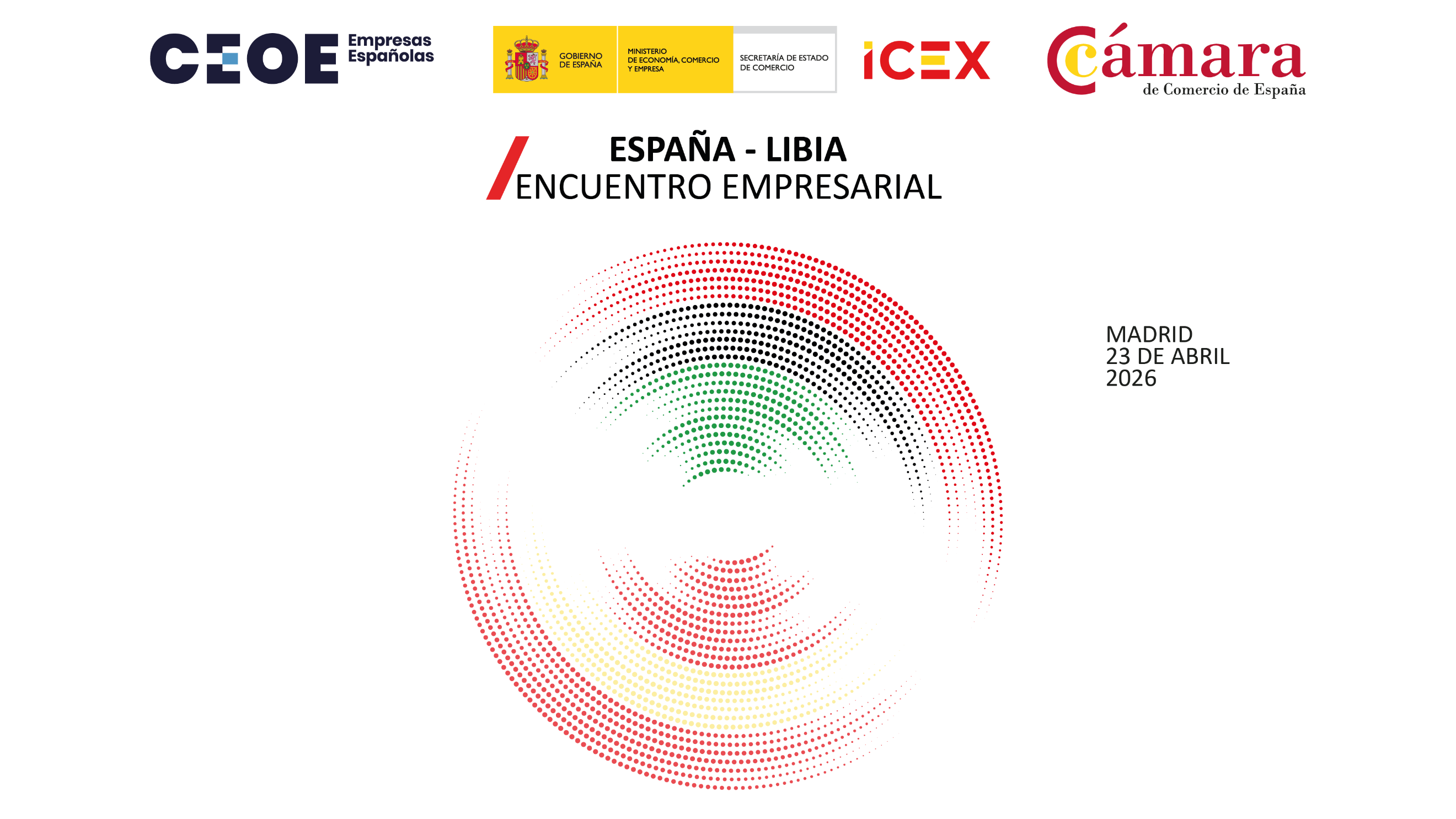 Con ocasión de la próxima visita de una importante delegación procedente de Libia encabezada por el Ministro de Industria y Recursos Minerales, el Sr. Mouhamed Abdulkader, y compuesta por los máximos representantes de las principales empresas públicas de los sectores del petróleo, gas, electricidad, puertos, aeropuertos y logística —incluida la Zona Franca de Misrata—, junto con entidades como la Corporación Nacional de Petróleo, la Compañía General de Electricidad de Libia y el Fondo de Reconstrucción y Desarrollo; la Cámara de Comercio de España, la Secretaría de Estado de Comercio, a través de ICEX España Exportación e Inversiones, y la Confederación Española de Organizaciones Empresariales (CEOE) organizan un Encuentro Empresarial España – Libia el próximo 23 de abril a las 9.30h en la Cámara de Comercio de España (Ribera del Loira 12, 28042 Madrid).