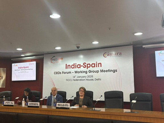 Nueva Delhi, 14/01/2026.- La directora general de la Cámara de Comercio de España, Inmaculada Riera, ha defendido en Nueva Delhi la relevancia estratégica de la relación económica entre España e India y el papel determinante que juega el Foro de CEOs España–India como instrumento de diálogo estructurado y cooperación empresarial. Riera ha intervenido ante los grupos de trabajo sectoriales del Foro, reunidos en la sede de la Federación de Cámaras de Comercio e Industrias de India (FICCI).