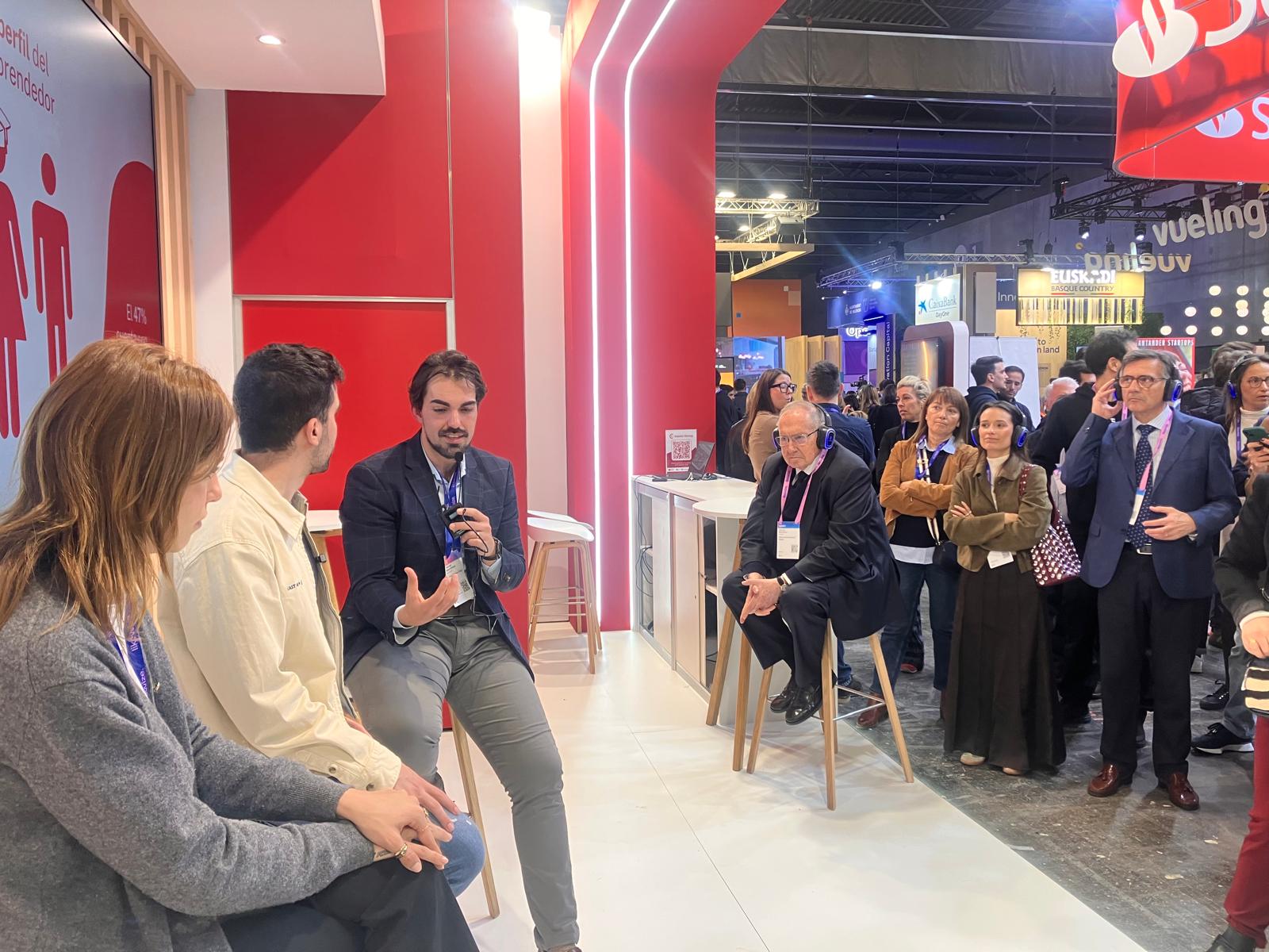 José Luis Bonet, presidente de Cámara de España, escuchando a los emprendedores durante la celebración de una mesa redonda sobre modelos de crecimiento de startups, en el stand de Cámara de España