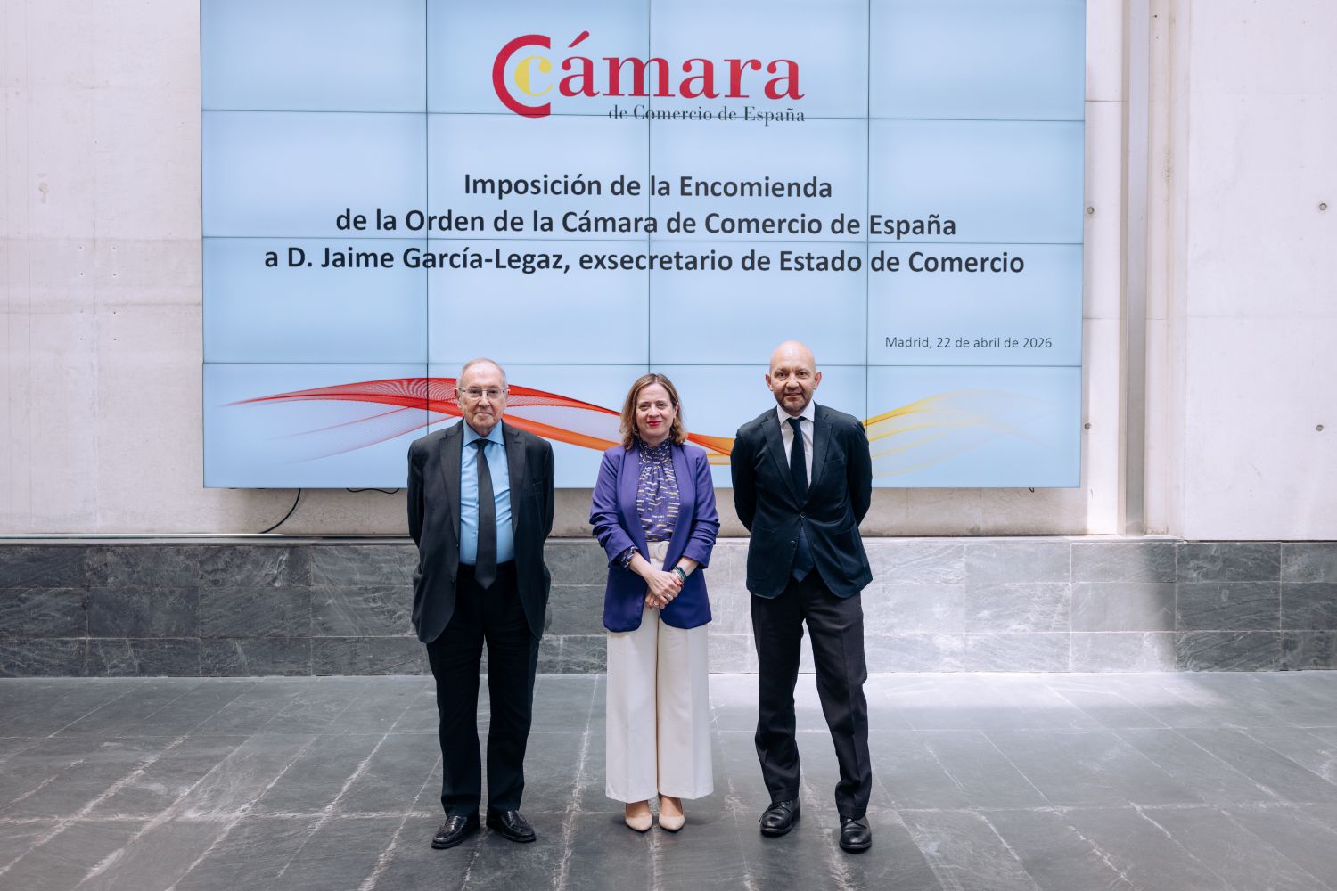 Madrid, 22/04/2026.- La Encomienda de la Orden de la Cámara de España ha sido impuesta hoy al ex secretario de Estado de Comercio, Jaime García-Legaz, por su significativo trabajo en favor de las empresas y la economía española.