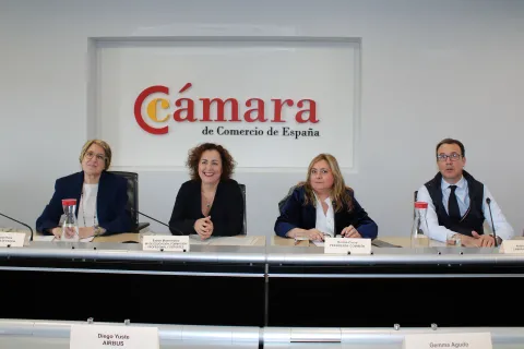 Inmaculada Riera, directora general de Cámara de España; Esther Monterrubio, secretaria general de Formación Profesional; Montserrat Civera, pta. Comisión Formación de Cámara de España; y Andrés Pereda, director desarrollo corporativo de Cámara de España