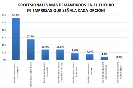 - El 56,1% estima que los profesionales más demandados en el futuro serán los relacionados con el ámbito tecnológico