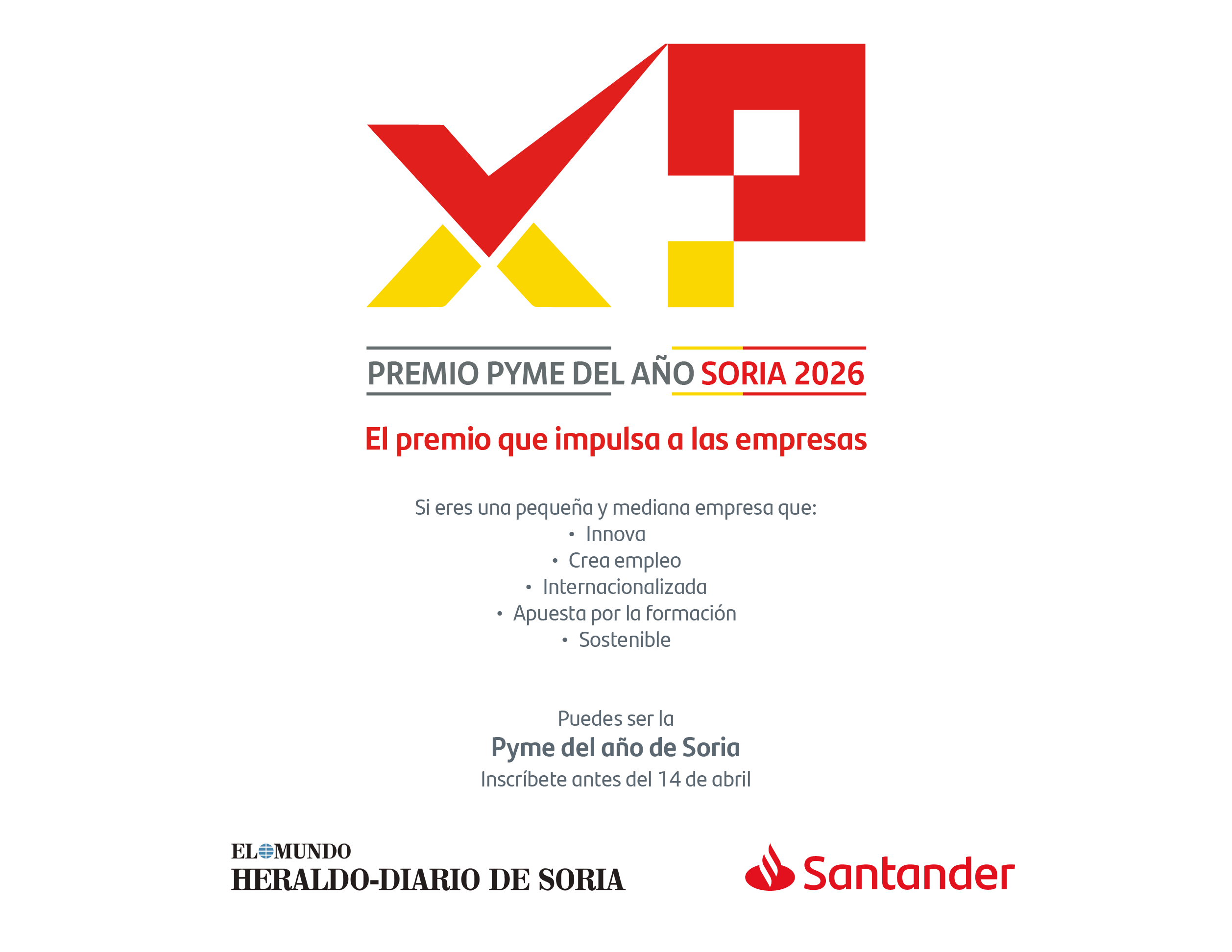 Banco Santander convoca el Premio Pyme del Año 2026 de Soria que reconocerá el desempeño de las pequeñas y medianas empresas que contribuyan a la generación de riqueza y creación de empleo en la provincia.